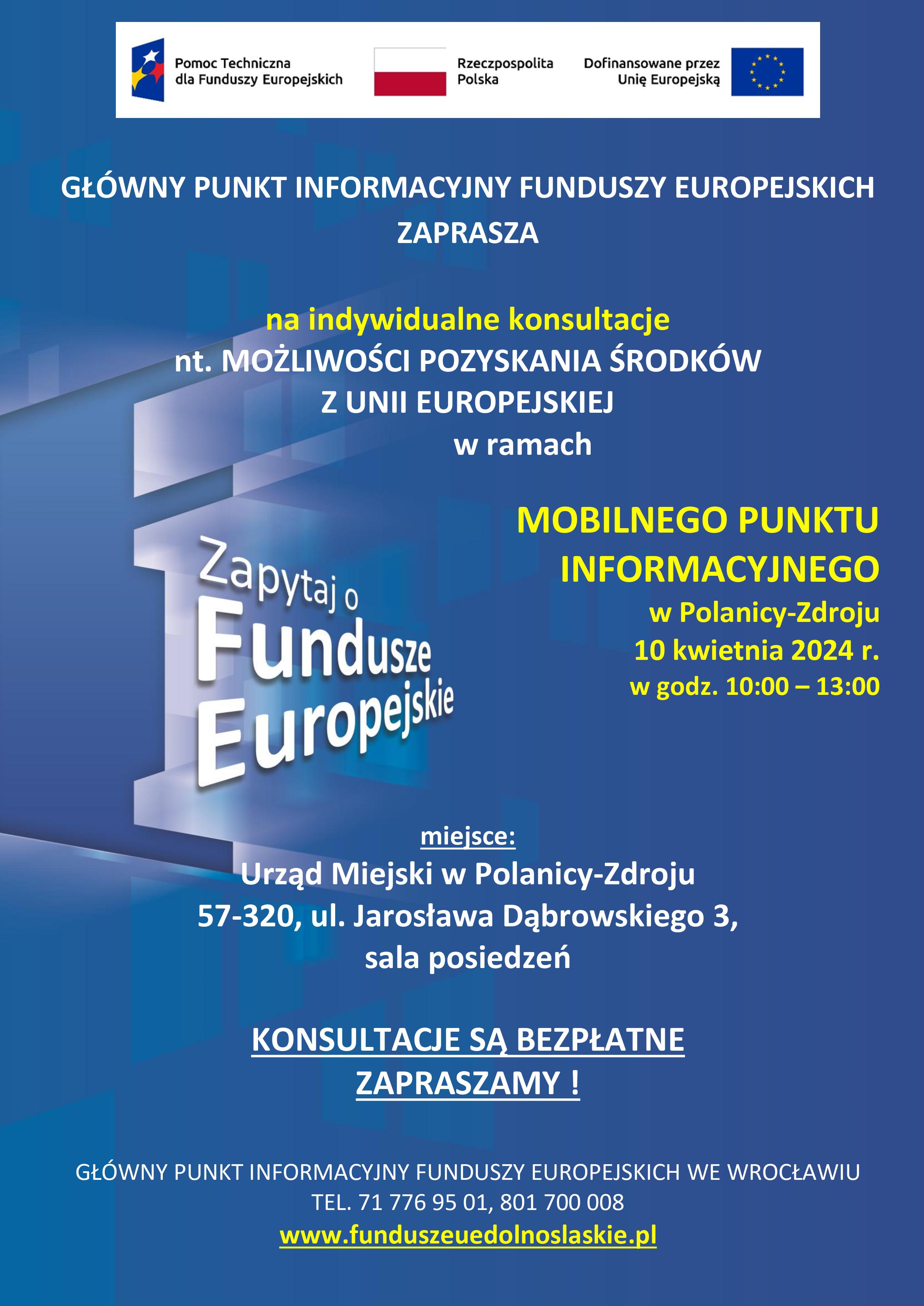 W kwietniu 2024 r. podczas dyżurów w ramach Mobilnych Punktów Informacyjnych pracownicy PIFE będą udzielać informacji w wybranych miejscowościach Dolnego Śląska.