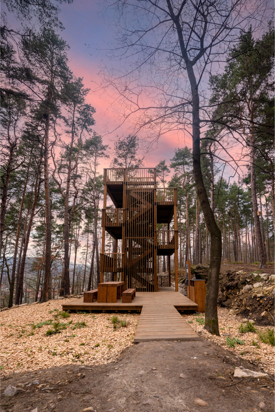 Na trasie znajdziesz strefę Street Workout, liczne miejsca wypoczynku oraz ścieżkę edukacji ekologicznej związanej z wodą. Warto zatrzymać się przy wieży ornitologiczno-meteorologicznej usytuowanej w koronach drzew. Wspinając się na jej szczyt będziemy mogli wsłuchać się w dźwięki leśnego życia. Ten wyjątkowy zakątek położony jest 1,5 km od polanickiego Parku Zdrojowego. Wyruszcie wprost z polanickiego deptaku, granitowymi schodami znajdującymi się w połowie ul. Mariańskiej.