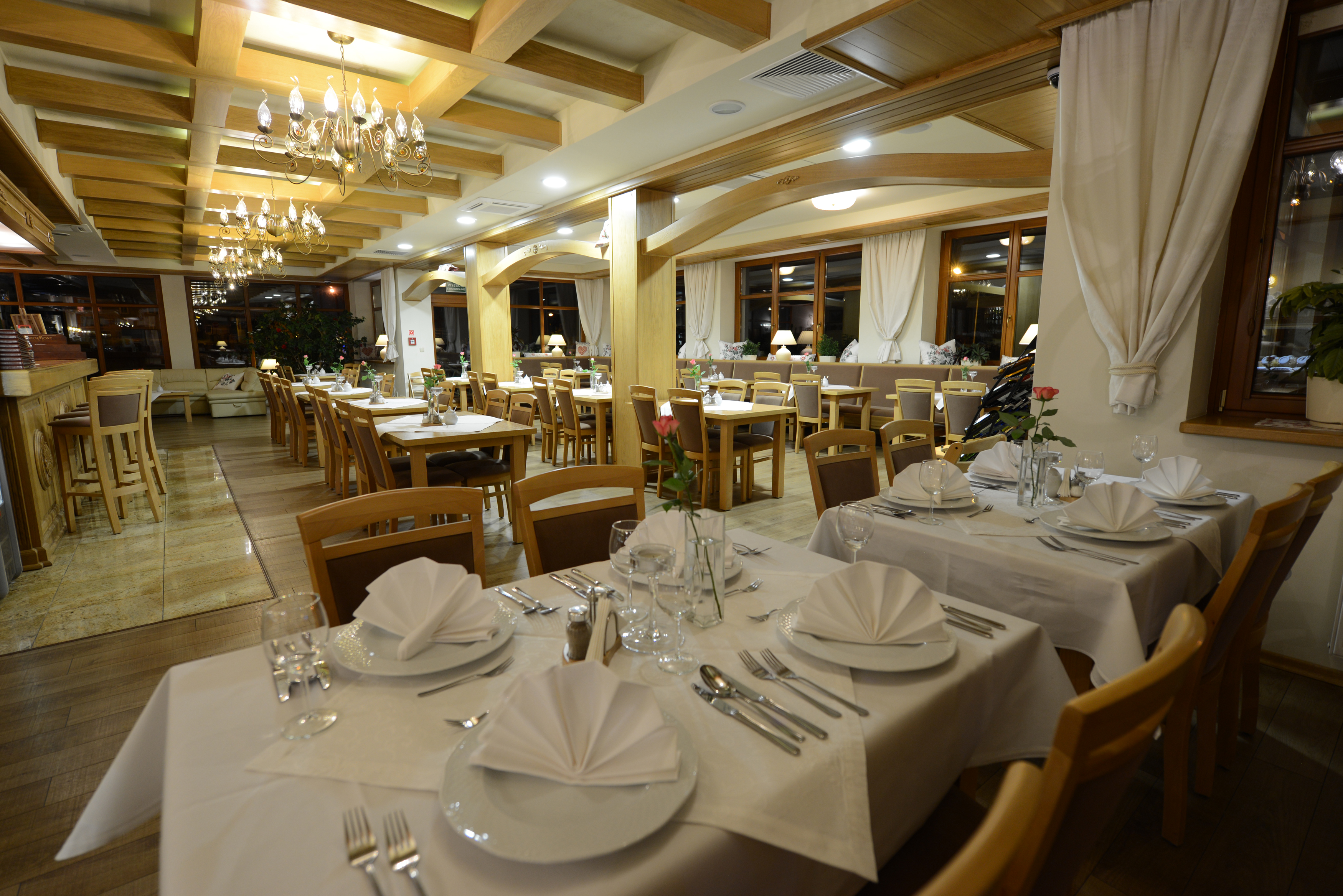Klimatyzowana restauracja posiada 80 miejsc dla gości. W klubowej części można odpocząć w cieple pieca kaflowego zachwycając się przepięknym pejzażem Kotliny Kłodzkiej.