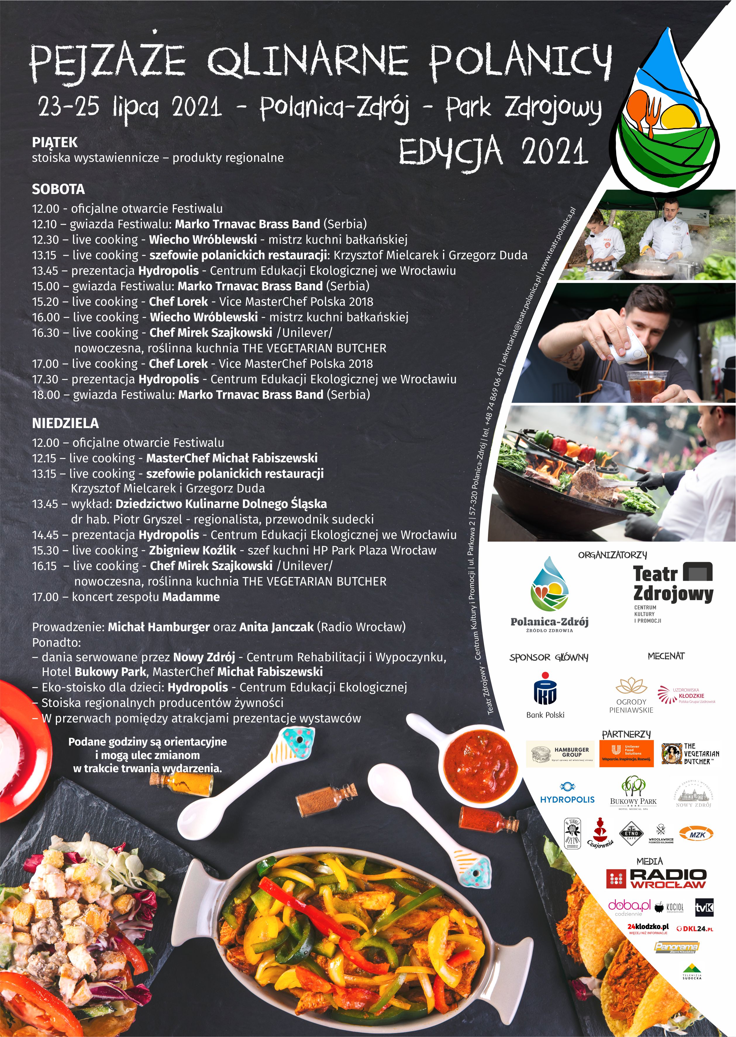 IV edycja festiwalu rozegrała się w oparach kuchni bałkańskiej a to za sprawą gwiazdy muzycznej – serbskiego zespołu : Marko Trnavac Brass Band. Poza melodiami z Bałkanów poznaliśmy także ich smaki. To wszystko dzięki świetnym kucharzom, a byli z nami: Wiecho Wróblewski oraz Chef Lorek, który kuchnię tamtej części Europy zna, jak mało kto. W sobotę gotowali na żywo także szefowie polanickich restauracji: Krzysztof Mielcarek z Hotelu Bukowy Park i Grzegorz Duda z Nowego Zdroju. Wśród pysznych potraw i bałkańskich melodii w Parku Zdrojowym znaleźć było można również lokalne produkty, a także stoisko jednej z największych dolnośląskich atrakcji - wrocławskiego Hydropolis. Podczas inauguracyjnego dnia festiwalu rozmawialiśmy z ekspertami Centrum Edukacji Ekologicznej o wodzie, kranówce i sposobach na ekologię w naszym codziennym życiu.